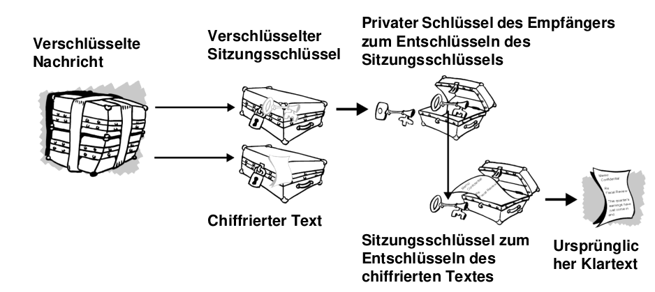 Der Sitzungsschlüssel wird mit dem privaten Schlüssel entschlüsselt.