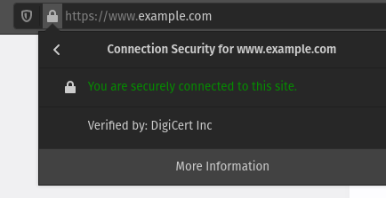 Besucht man https://example.com und klickt auf das Schloss, sieht man folgendes: